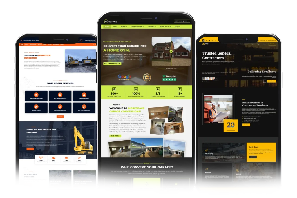 No need to pay web designers thousands when you can launch a high-performing construction website in minutes. Our pre-built templates are designed for trades, easy to customise, and optimised for high google rankings so you can get traffic organically.